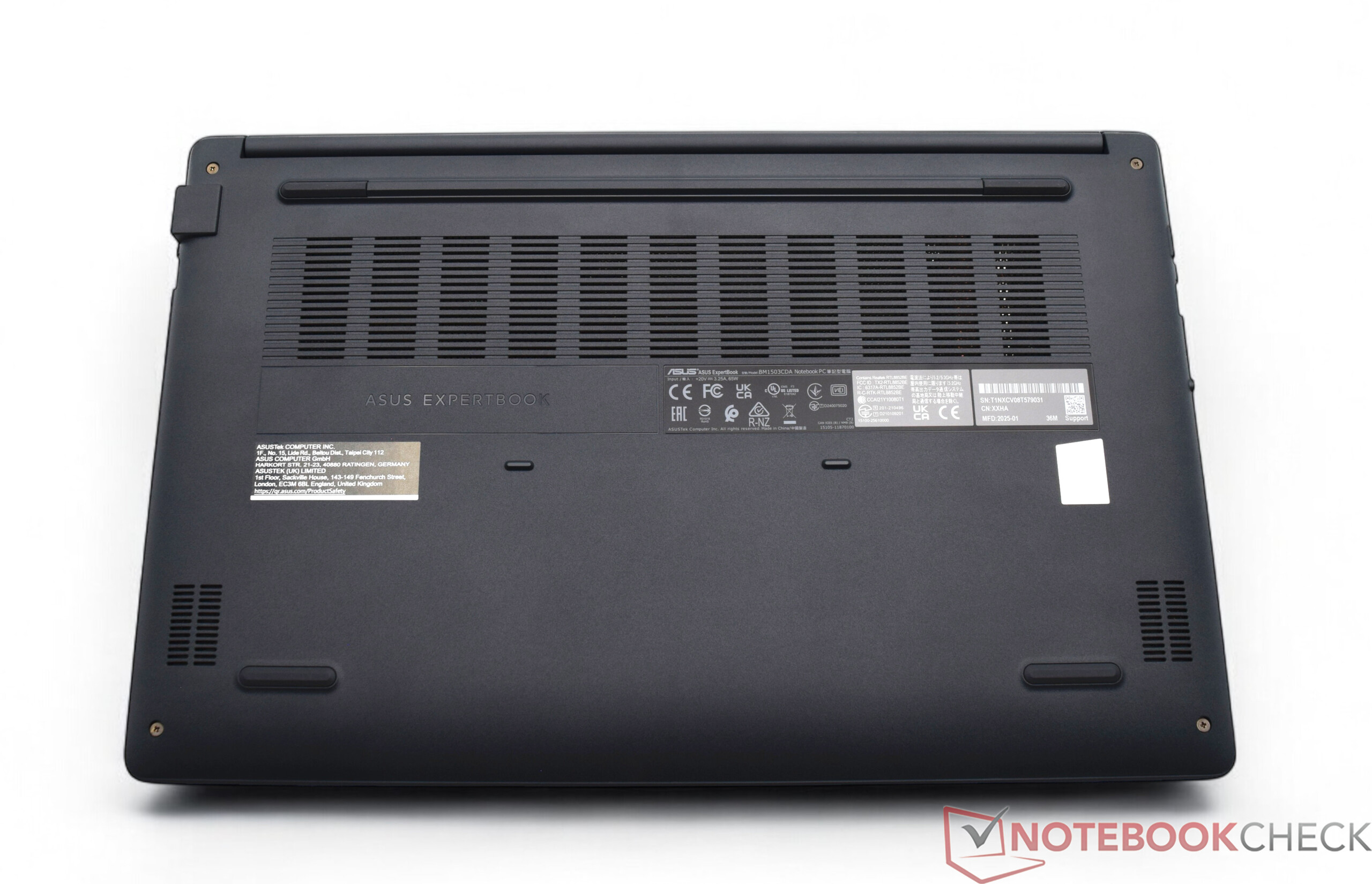 Het is mogelijk om onderhoudswerkzaamheden aan de Asus ExpertBook B1 uit te voeren, maar dit vereist wel enige zorgvuldigheid. De Asus laptop heeft een soortgelijk ontwerp als de Asus ExpertBook P1. De bodemplaat is bevestigd met verschillende schroeven en extra plastic clips zorgen voor een stevige pasvorm. Vooral de middelste beugel kan een beetje lastig te openen zijn. Wij raden aan om eerst de randen voorzichtig los te maken voordat u de onderkant met een gecontroleerde ruk verwijdert.