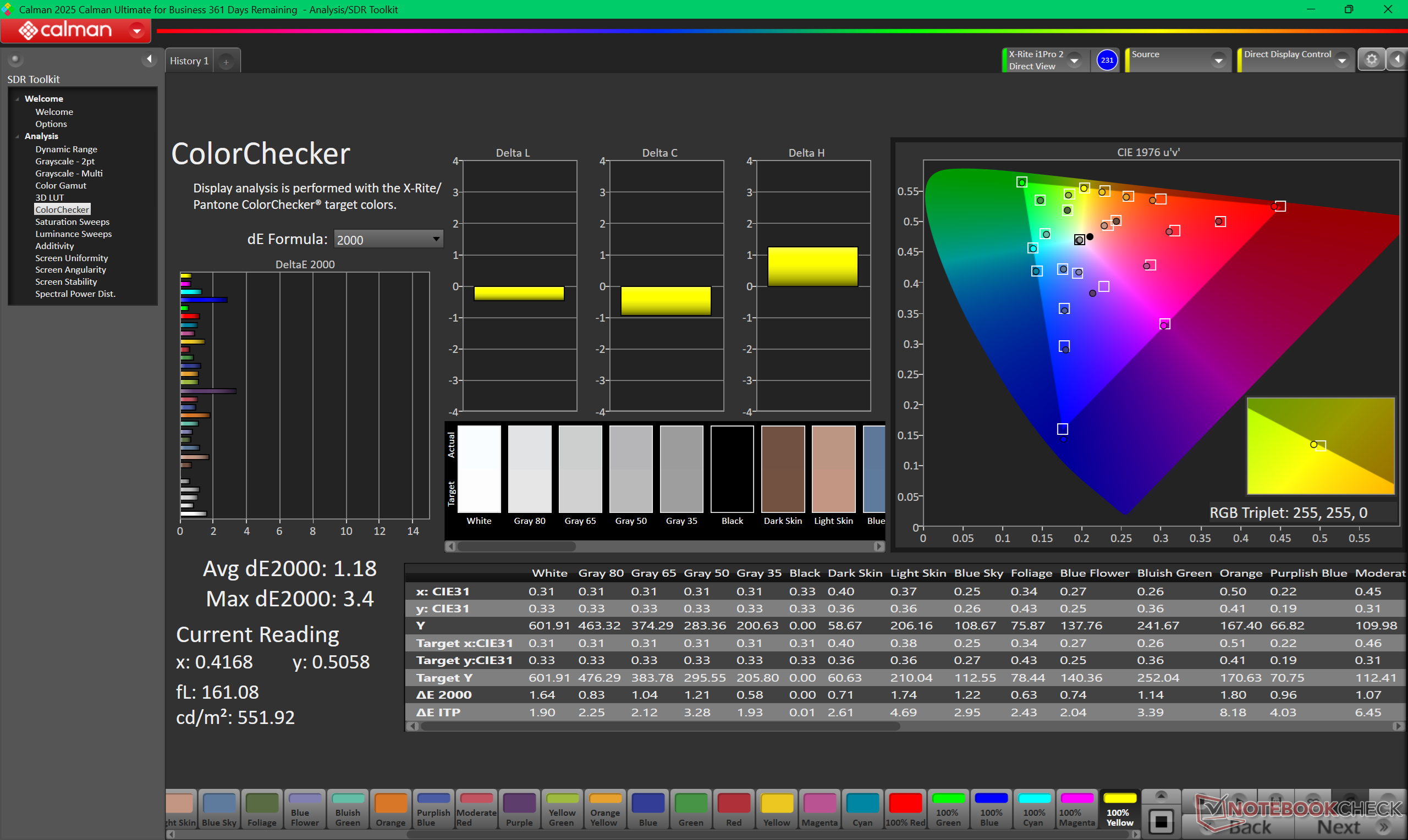 ΔE ColorChecker Calman: 1.18 | ∀{0.5-29.43 Ø4.77}