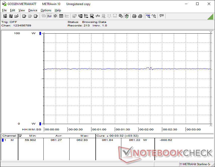 Het totale verbruik wanneer de CPU volledig wordt gebruikt, piekt op iets minder dan 65 W met de meegeleverde 90 W USB-C wisselstroomadapter.