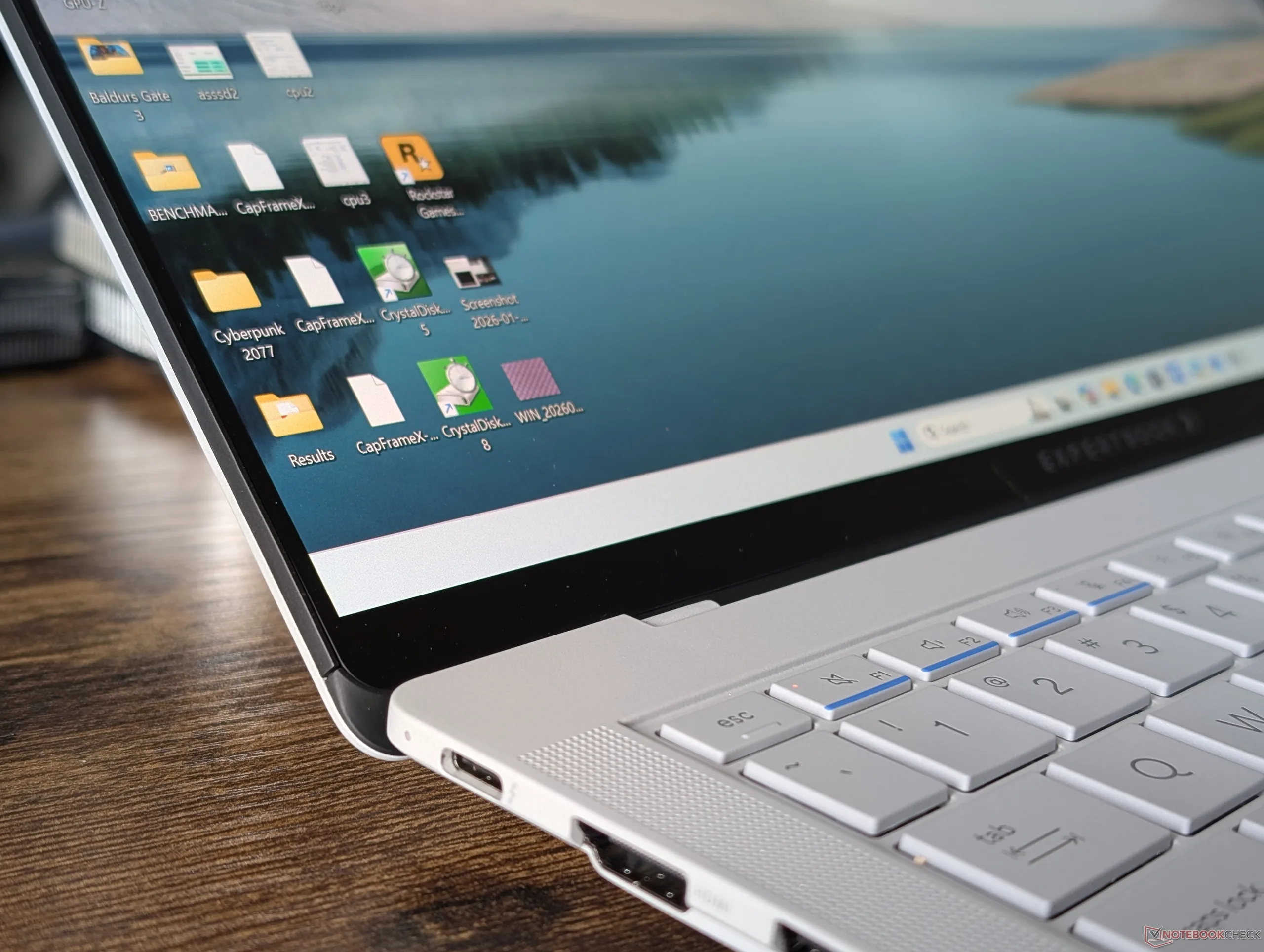 Wat de laptop zelf betreft, kan het haptische clickpad overdreven gevoelig zijn, terwijl het matte OLED duidelijk korreliger is dan de meer gebruikelijke glanzende panelen. Bepaalde zakelijke gebruikers kunnen deze tekortkomingen echter goedmaken voor de indrukwekkende draagbaarheid en het prestatiepotentieel van het systeem als geheel.