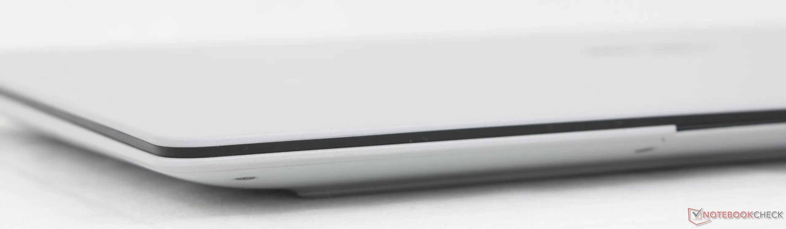 Hoewel het clickpad met 12,8 x 8,8 cm redelijk groot is, is de haptische feedback bij het klikken erg zwak voor een onbevredigend gevoel. Bovendien ligt de voorkant van het clickpad helemaal tegen de voorkant van de behuizing aan, in tegenstelling tot de meeste andere laptops, wat in onze ervaring betekent dat er vaker per ongeluk geklikt of bewogen wordt.