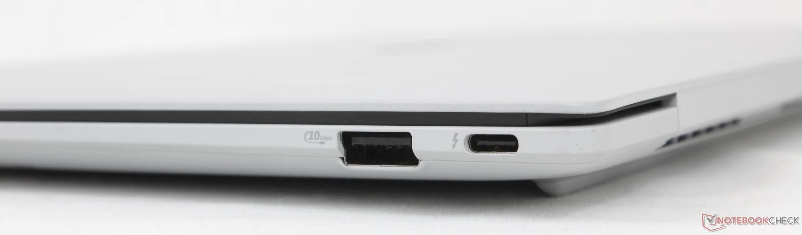 De poortopties zijn vergelijkbaar met de ThinkPad T14s Gen 6 zij het zonder Smart Card-opties. Op de Asus waarderen we echter dat de twee USB-C poorten verdeeld zijn over de rechter- en linkerrand van het systeem, zodat u ze gemakkelijker kunt opladen. Ter vergelijking: dezelfde twee USB-C poorten op de eerder genoemde ThinkPad bevinden zich alleen langs de linkerrand.