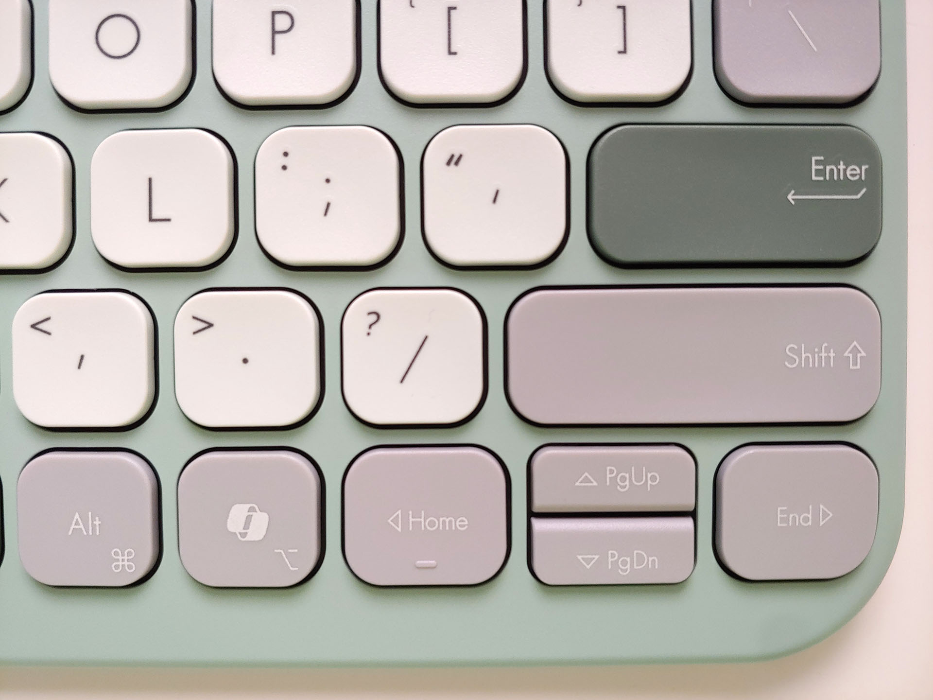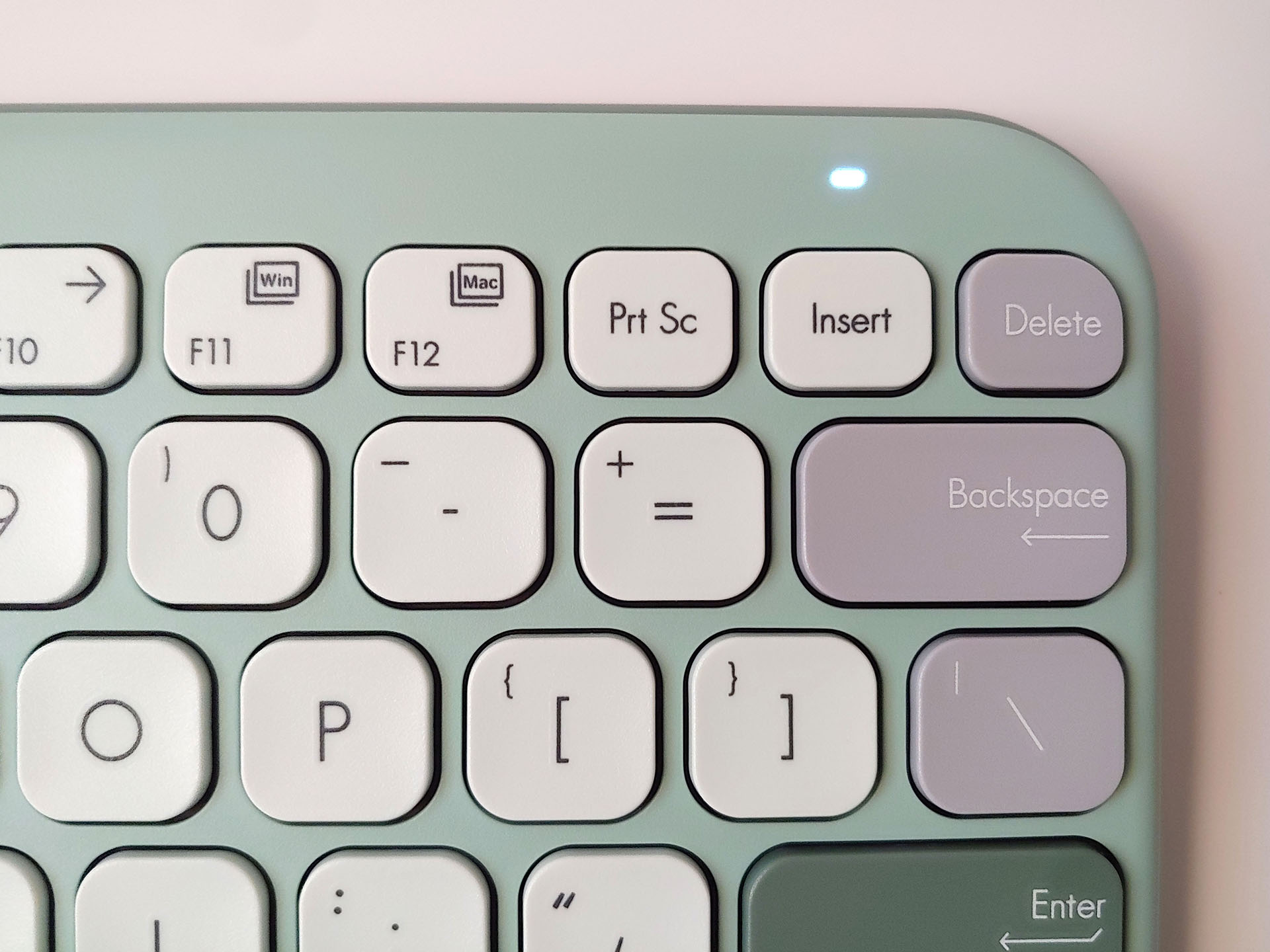 Als u op de toetsen FN + 1/2/3 drukt, koppelt u het toetsenbord aan maximaal drie nieuwe apparaten. Een klein wit statuslampje boven de DEL-toets geeft de status aan. De lay-out schakelt tussen Windows- en Mac-modi door op FN + F11/F12 te drukken. Als u op FN + ESC drukt, schakelt u de functietoets-rijblokkering om voor gebruikers die liever F1-F12 gebruiken dan systeembedieningen, zoals dempen of volume omhoog. De Copilot-toets brengt de Copilot AI op Windows 11 PC's naar voren.