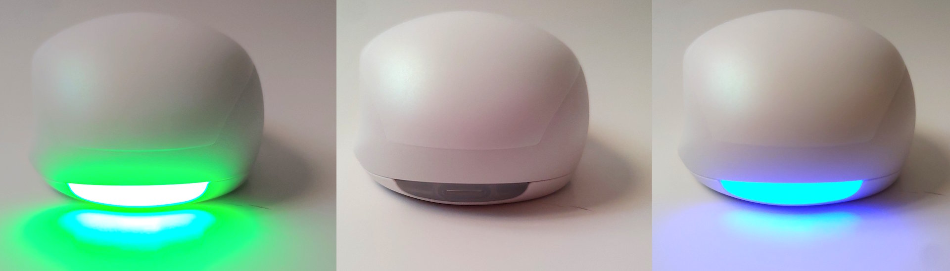 De muis heeft twee energiestanden: 2,4 GHz met de meegeleverde USB-dongle, gekoppeld aan een groen achterlicht, of Bluetooth, gekoppeld aan een blauw licht. Als u in deze modus lang op de PAIR-knop drukt, wordt de muis verbonden met apparaten en kunt u met één druk op de DPI/PAIR-knop schakelen tussen drie trackingresoluties, terwijl het achterlicht één, twee of drie keer knippert.