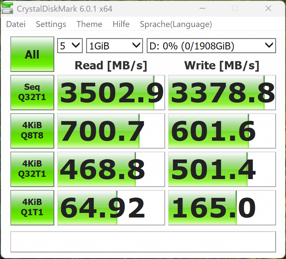 We hebben de volgende benchmarks en metingen uitgevoerd met het Performance power profiel. Voor dagelijks gebruik raden we echter aan om de Fluistermodus te gebruiken, omdat de ventilatoren dan aanzienlijk stiller zijn. Zelfs in de handmatige modus kan de GPU slechts 120 watt verbruiken.