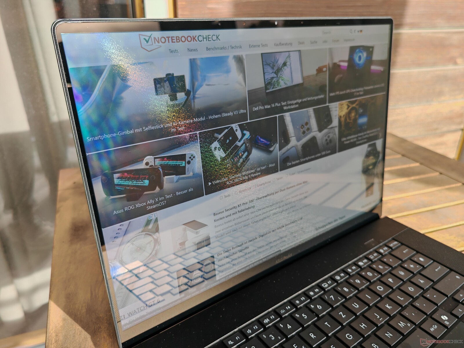 Het nieuwe Lumina Pro-scherm van de Asus ProArt P16 is een tandem OLED-paneel met een resolutie van 3.840 x 2.400 pixels en een vernieuwingsfrequentie van 120 Hz. Er worden twee lichtlagen over elkaar gelegd, wat naar verluidt resulteert in een hogere helderheid, levendigere kleuren en een lager energieverbruik. De subjectieve beeldkwaliteit is uitstekend, en hoewel de aanraaklaag ervoor zorgt dat heldere inhoud er bij nader inzien iets korreliger uitziet, is dit niet merkbaar op een normale kijkafstand. Dit is zeker gezeur op hoog niveau, maar noch de tandem-OLED in de Yoga Pro 9i 16 noch het mini-LED-paneel in de MacBook Pro 16 (die beide aanraakfunctionaliteit bieden) hebben dit probleem. De responstijden zijn extreem snel en de bewegingen op het scherm zijn extreem vloeiend dankzij 120 Hz.