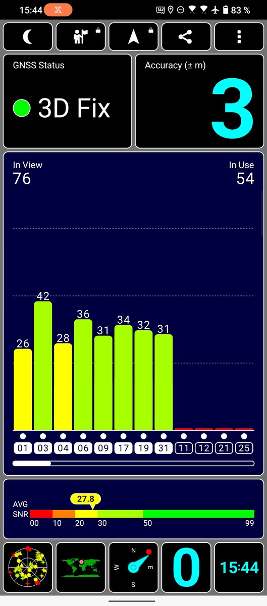 De ROG Phone 6 maakt gebruik van alle gebruikelijke wereldwijde satellietnavigatiesystemen, inclusief het Indiase NavIC, om zijn locatie te bepalen. De satfix slaagt snel, zelfs binnenshuis, en is verrassend nauwkeurig.