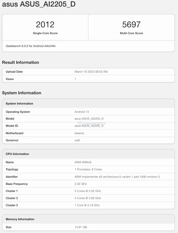 Dit gerucht dankt zijn oorsprong aan nieuwe noteringen gevonden op Geekbench 6 met wat lijkt op een nieuwe smartphone van de Taiwanese gaming gigant. De"AI2205_D " heeft zelfs een ROG Phone-achtig modelnummerzij het met een nieuw achtervoegsel dat heeft geleid tot beweringen dat het een opvolger is voor de 6D.
