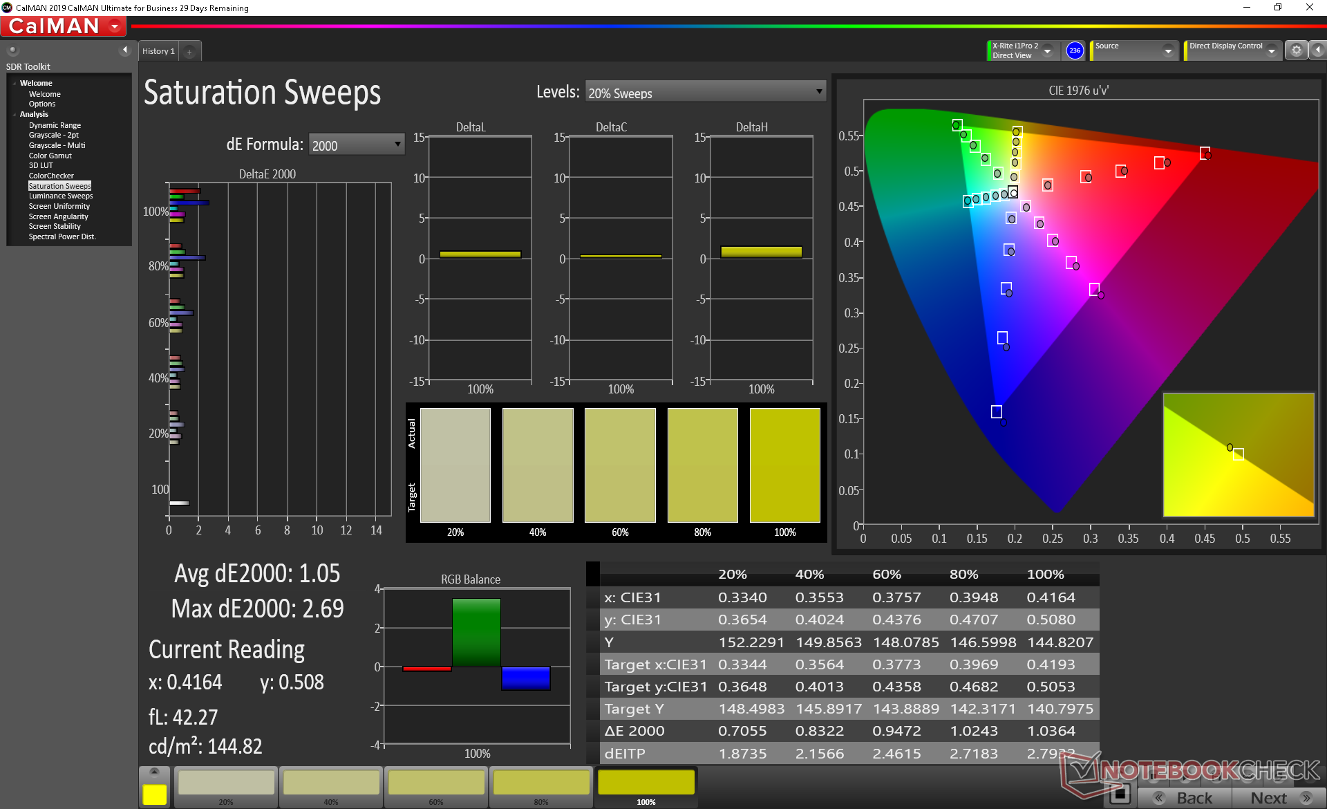 Het display had beter gekalibreerd kunnen worden gezien de prijsklasse. De kleurtemperatuur is te warm uit de doos, wat een impact heeft op de gemiddelde grijstint en de kleurnauwkeurigheid. Nadat we het paneel zelf hebben gekalibreerd, zou de nauwkeurigheid over de hele linie merkbaar verbeteren. Wij raden een eindgebruikerskalibratie aan indien mogelijk of in ieder geval handmatige aanpassingen aan de grijstinten voor een beter beeld.