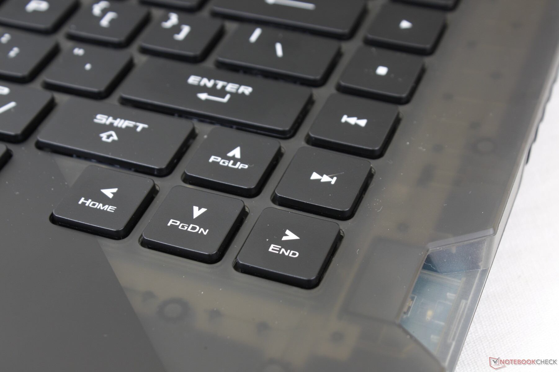 Asus heeft zowel het toetsenbord als het clickpad volledig vernieuwd ten opzichte van de oudere G532. Met name het RGB-toetsenbord per toets is nu optisch-mechanisch met een andere indeling en gevoel. Andere OEM's zijn ook aan het experimenteren geweest met soortgelijke mechanische schakelaars, zoals de nieuwste Alienware laptops. Deze toetsen zijn luider en klikgevoeliger, wat sommige gamers zullen waarderen, maar deze verandering maakt de laptop ook ongunstig voor klaslokalen, bibliotheken, slaapzalen en andere omgevingen waar stillere toetsen de voorkeur hebben.