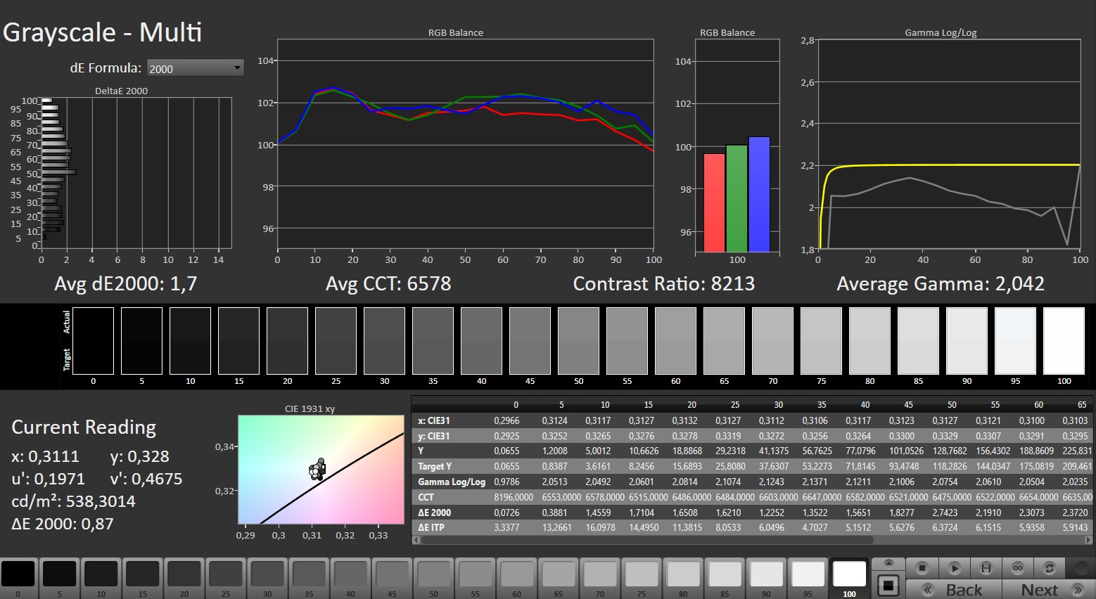 ΔE Greyscale Calman: 1.7 | ∀{0.09-98 Ø5}