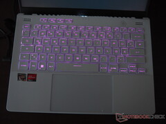 De invoerapparaten van de Zephyrus G14 bleken verrassend goed te zijn voor een gaming notebook. Het toetsenbord biedt een aangename duidelijke en precieze feedback, en het contrast tussen de donkere letters en de heldere achtergrondkleur op de toetskappen was meer dan voldoende voor een uitstekende leesbaarheid. S Nachts biedt het toetsenbord een ingebouwde RGB achtergrondverlichting die verschillende modi ondersteunt en via software kan worden geregeld.