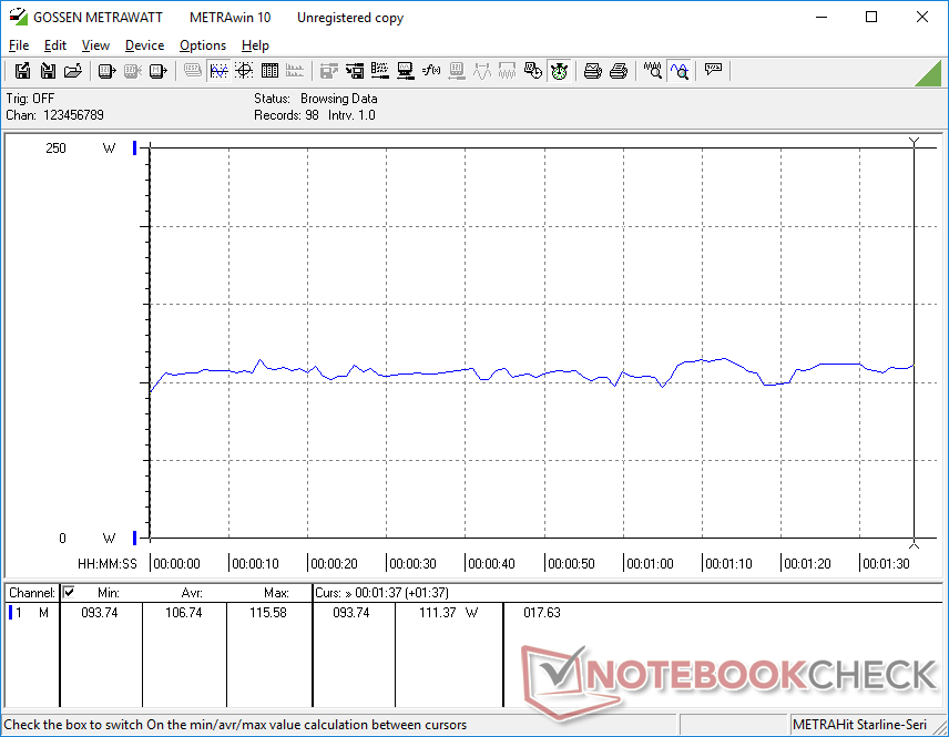Stationair draaien op het bureaublad bij de laagste helderheidsinstelling en stroomprofiel verbruikt net iets minder dan 11 W, terwijl de maximale helderheidsinstelling in Turbo modus meer dan twee keer zoveel zou verbruiken met 27 W. Het is dus de moeite waard om het systeem in de Energiebesparingsmodus te zetten als de extra paardenkracht niet nodig is