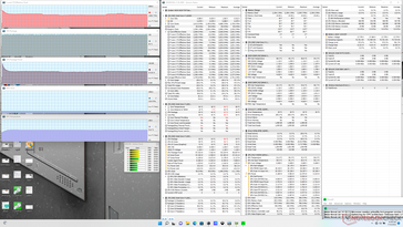 De kloksnelheden van de CPU, de kerntemperatuur en het opgenomen vermogen van de verpakking piekten respectievelijk op 3,7 GHz, 95 C en 93 W bij het starten van de Prime95 stress. De kloksnelheden begonnen echter onmiddellijk te dalen voordat ze uiteindelijk stabiliseerden op 2,9 GHz en een opgenomen vermogen van 57 W, om te voorkomen dat de kerntemperaturen nog hoger zouden worden. Het is duidelijk dat de koeloplossing een beperkende factor is voor hogere CPU prestaties.