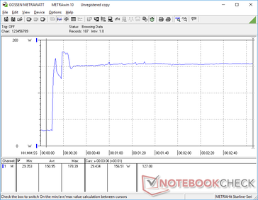 GPU klok, geheugen klok, en kern temperatuur zouden stabiliseren bij respectievelijk 1612 MHz, 1500 MHz, en 86 C, bij het draaien Witcher 3 op het Balanced power profiel. GPU-klok en geheugenklok zouden slechts licht toenemen bij gebruik van de Turbo-modus, maar de GPU-temperatuur zou gelijk blijven omdat het ventilatorgeluid hoger is in de Turbo-modus, zoals hierboven vermeld, ter compensatie van de hogere kloksnelheden. Merk op dat zowel GPU als CPU meer stroom verbruiken, respectievelijk van 50 W tot 65 W en van 19 W tot 28 W, wanneer ze Witcher 3 in turbomodus.