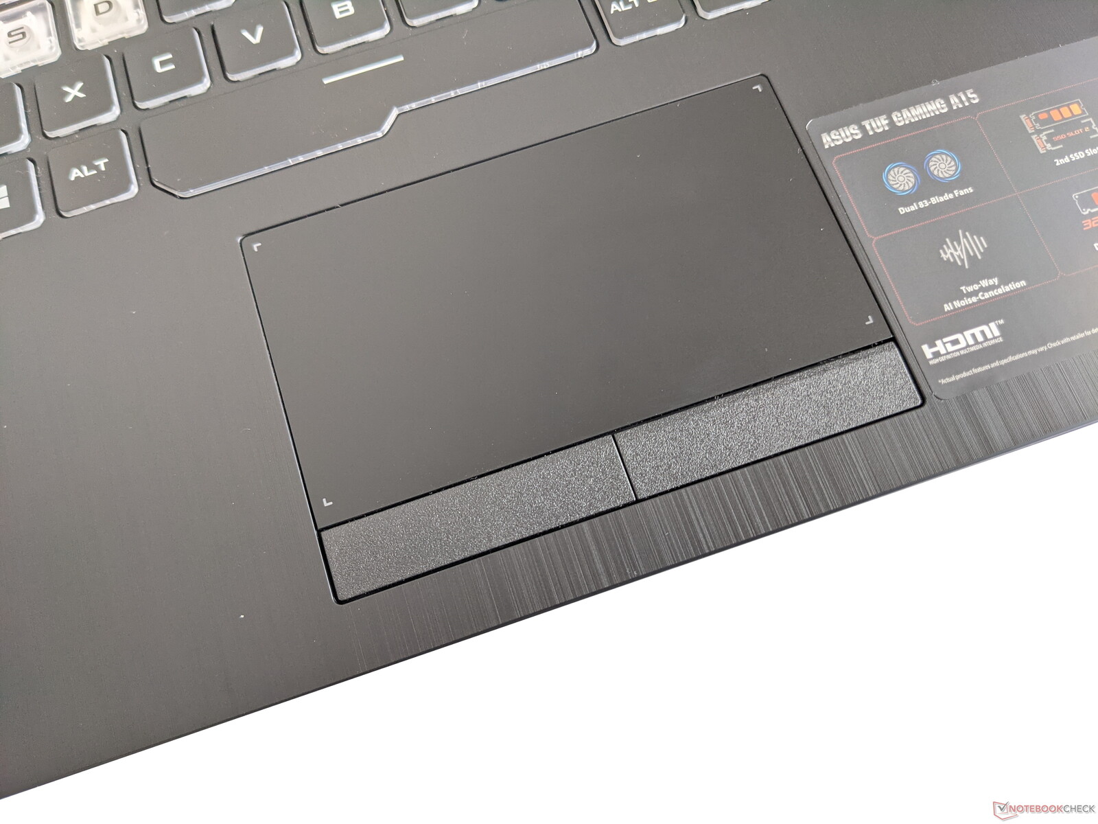 Asus kiest voor een klassiek touchpad met aparte muisknoppen als muisvervanger. Deze knoppen hebben een zacht drukpunt, maar ze triggeren betrouwbaar. Het touchpad reageert ook precies op aanraking en is goed geschikt voor het navigeren met de muisaanwijzer