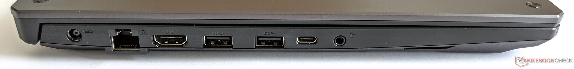 De poortconfiguratie van de Asus TUF Gaming A15 is veelzijdig, en alles wat nodig is voor de meeste toepassingen is voorzien. In tegenstelling tot deTUF Gaming F15 Intel variant, moet je het hier echter zonder Thunderbolt doen