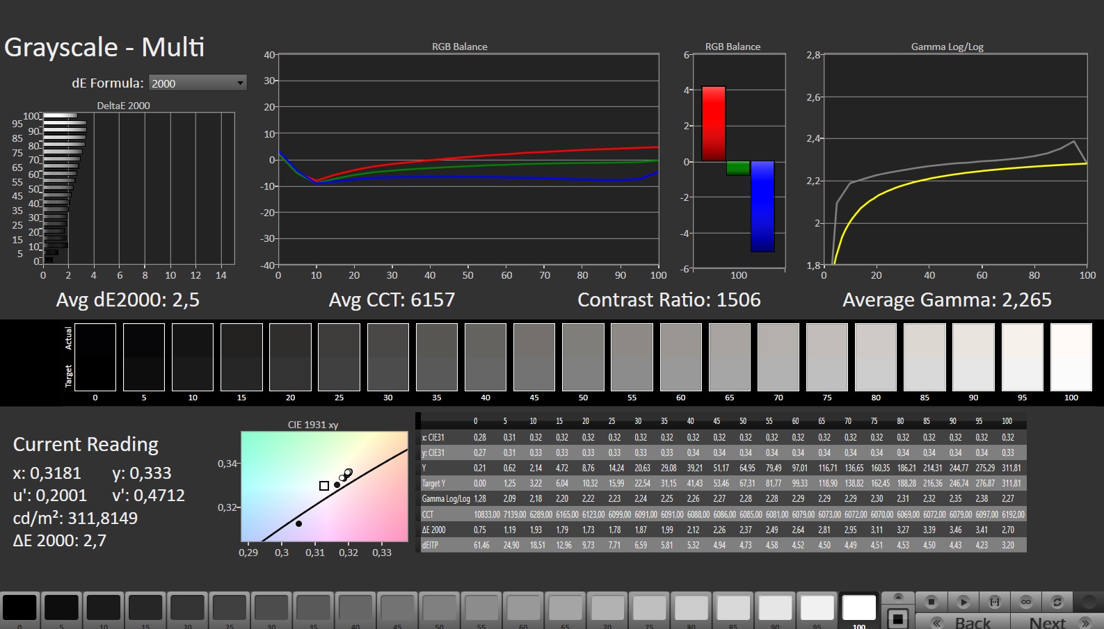 ΔE Greyscale Calman: 2.5 | ∀{0.09-98 Ø5}