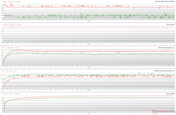 Tijdens een FurMark stress test op 1280 x 720 zonder AA, zien we dat de TUF Gaming RTX 4070 Ti volledig gebruik maakt van zijn 285 W TGP en draait op een gemiddelde 2.613 MHz terwijl hij soms de nominale 2.640 MHz maximale boost raakt. Door de TGP te verhogen naar 314 W worden de klokken opgevoerd tot 2.715 MHz, terwijl het gemiddelde op 2.687 MHz ligt. Dit heeft slechts een minimale invloed op de GPU hotspot temperaturen, die kunnen oplopen tot 83 °C.