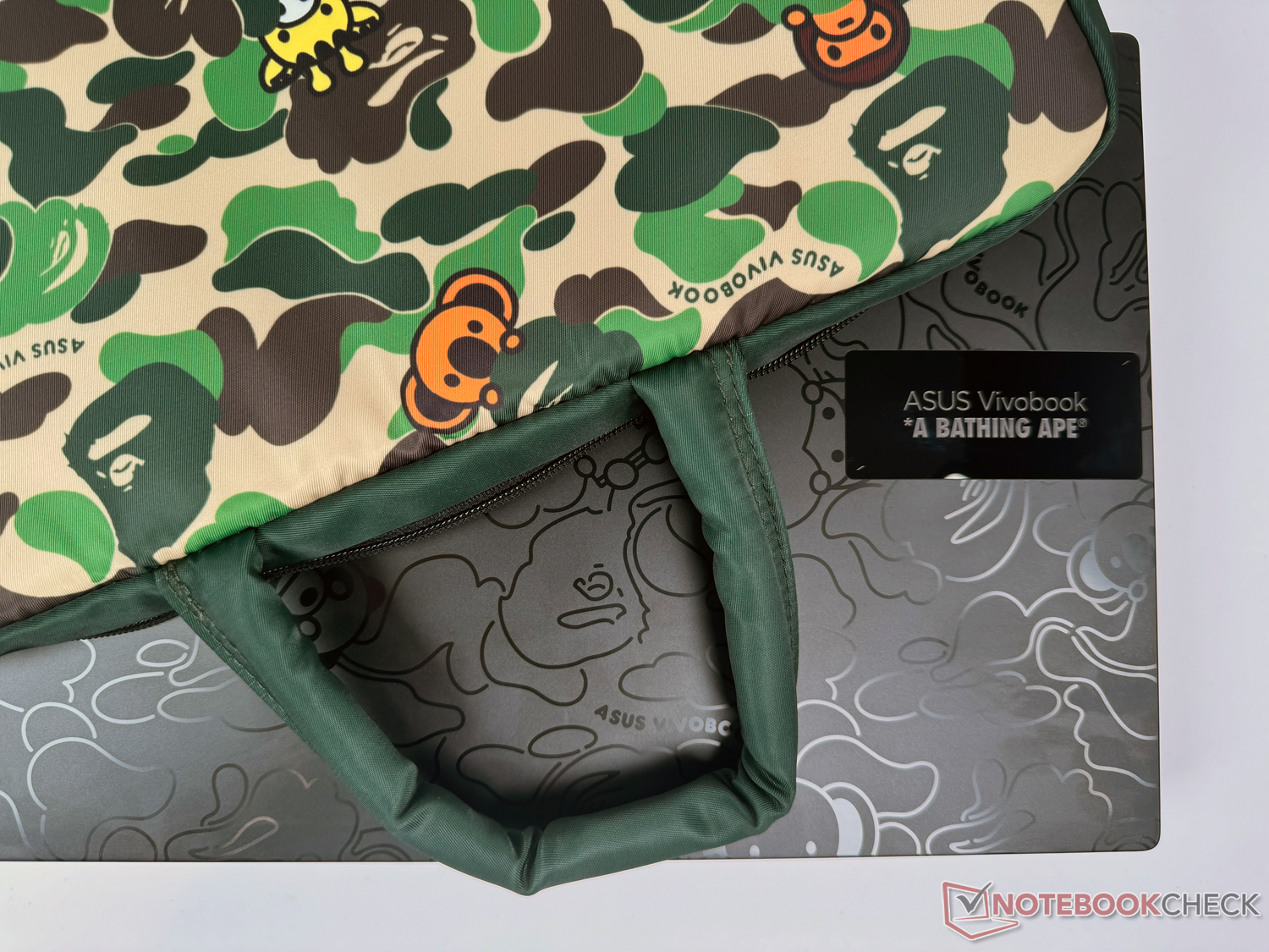 Bovendien wordt de speciale Asus-editie geleverd met een eenvoudige muis met twee knoppen en een laptoptas die beide versierd zijn met de BAPE-styling. Er wordt ook een "A Bathing Ape" figuurtje meegeleverd, evenals een miniatuurversie van de laptop en wat stickers.
