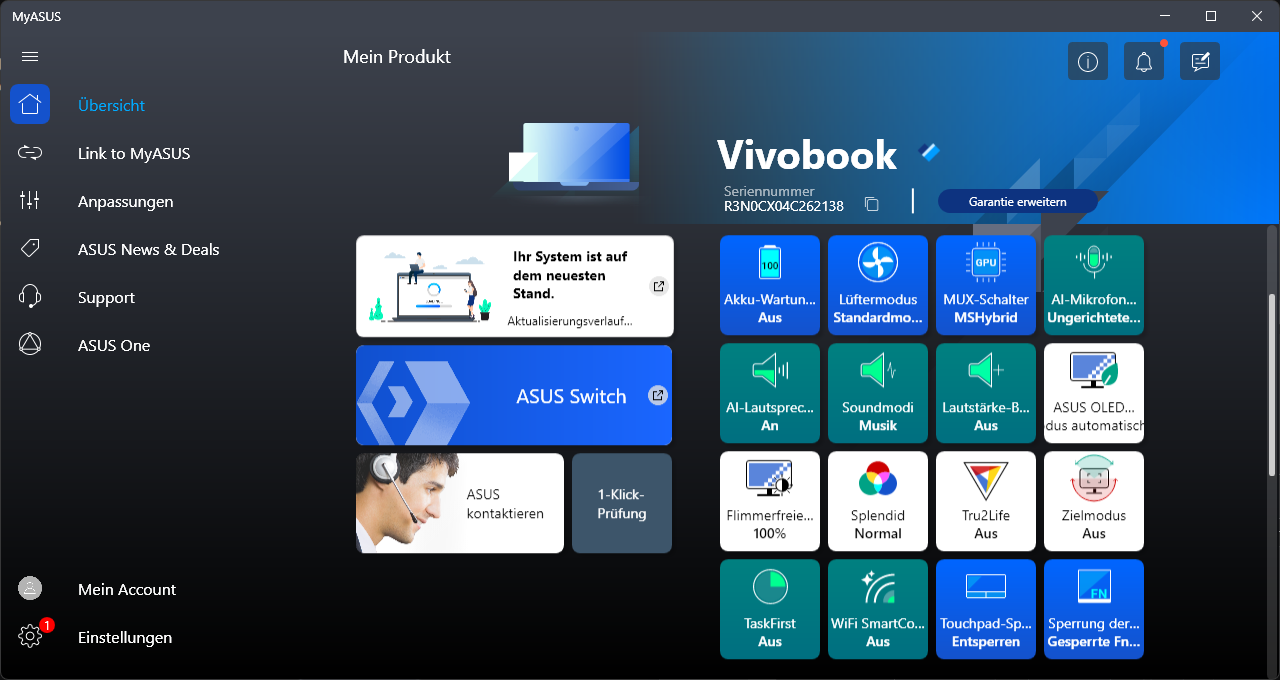 Het OLED beeldscherm komt ook goed tot zijn recht in de VivoBook Pro 16X. Het diepe zwart en het daaruit voortvloeiende hoge contrast zorgen voor heldere en levendige kleuren. Deze worden bijna perfect weergegeven, zelfs zonder verdere kalibratie.