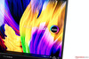 Het ingebouwde beeldscherm is een 16:9 OLED paneel met 1920 x 1080 pixels (FHD) en een 13,3 inch diagonaal, wat resulteert in een pixeldichtheid van 166 PPI. Met een gemiddelde helderheid van 370 cd/m² plaatst onze ZenBook zich echter slechts in de middenmoot van het veld van de vergelijkingsapparaten. Aan de andere kant weerspiegelt de zeer lage zwartwaarde de sterke punten van de OLED technologie, wat ook resulteert in een zeer goede contrast ratio. Bovendien is de zogenaamde "clouding" geen probleem, omdat het beeldscherm het zonder de achtergrondverlichting met een groot oppervlak moet stellen. Om inbrandeffecten te voorkomen, wordt een refresh/PWM-aanpak gebruikt. Bij volle helderheid hebben we een frequentie van 60 Hz gemeten.