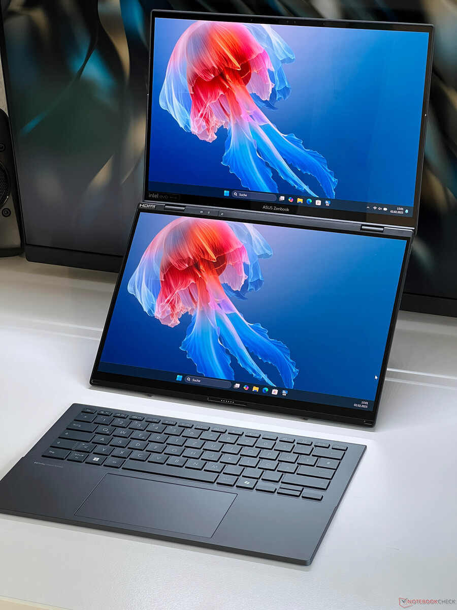 De Zenbook Duo is een van de eerste apparaten die is uitgerust met de nieuwe Arrow Lake mobiele processors van Intel en het is nog steeds een zeer interessant apparaat dankzij het concept met meerdere schermen. Twee 14-inch OLED's met een FHD-resolutie zijn geïnstalleerd in ons testapparaat, wat vooral de batterijduur ten goede komt.Andreas Osthoff, 👁 Andreas Osthoff (vertaald door DeepL / Ninh Duy) Gepubliceerd 🇺🇸 🇩🇪 ...