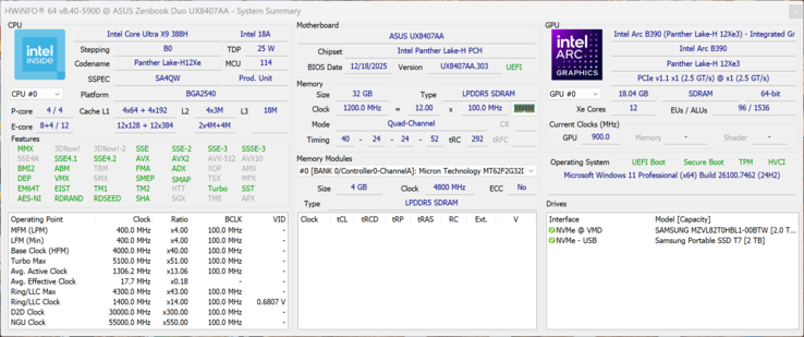 Het tweede grote hoogtepunt is natuurlijk de nieuwe Panther Lake mobiele processor van Intel, die niet teleurstelt. Deze processor biedt de multi-core prestaties van de snellere Arrow Lake processoren, maar is aanzienlijk minder energievreterig. Het is daarom een geslaagde combinatie van de twee vorige series, Arrow Lake en Lunar Lake, die naast elkaar bestonden terwijl ze aan zeer verschillende gebruikerscategorieën tegemoet kwamen. Met de nieuwe grafische adapter is er een enorme sprong in prestaties van ongeveer 70%, wat aanzienlijk is. Vergeet niet dat de snelle B390 iGPU beperkt is tot een select aantal Panther Lake-chips. Bij de ZenBook Duo betekent dit dat u voor de beste SKU van 2.599 euro moet gaan, omdat de basisversie van 2.299 euro een aanzienlijk zwakkere iGPU heeft.