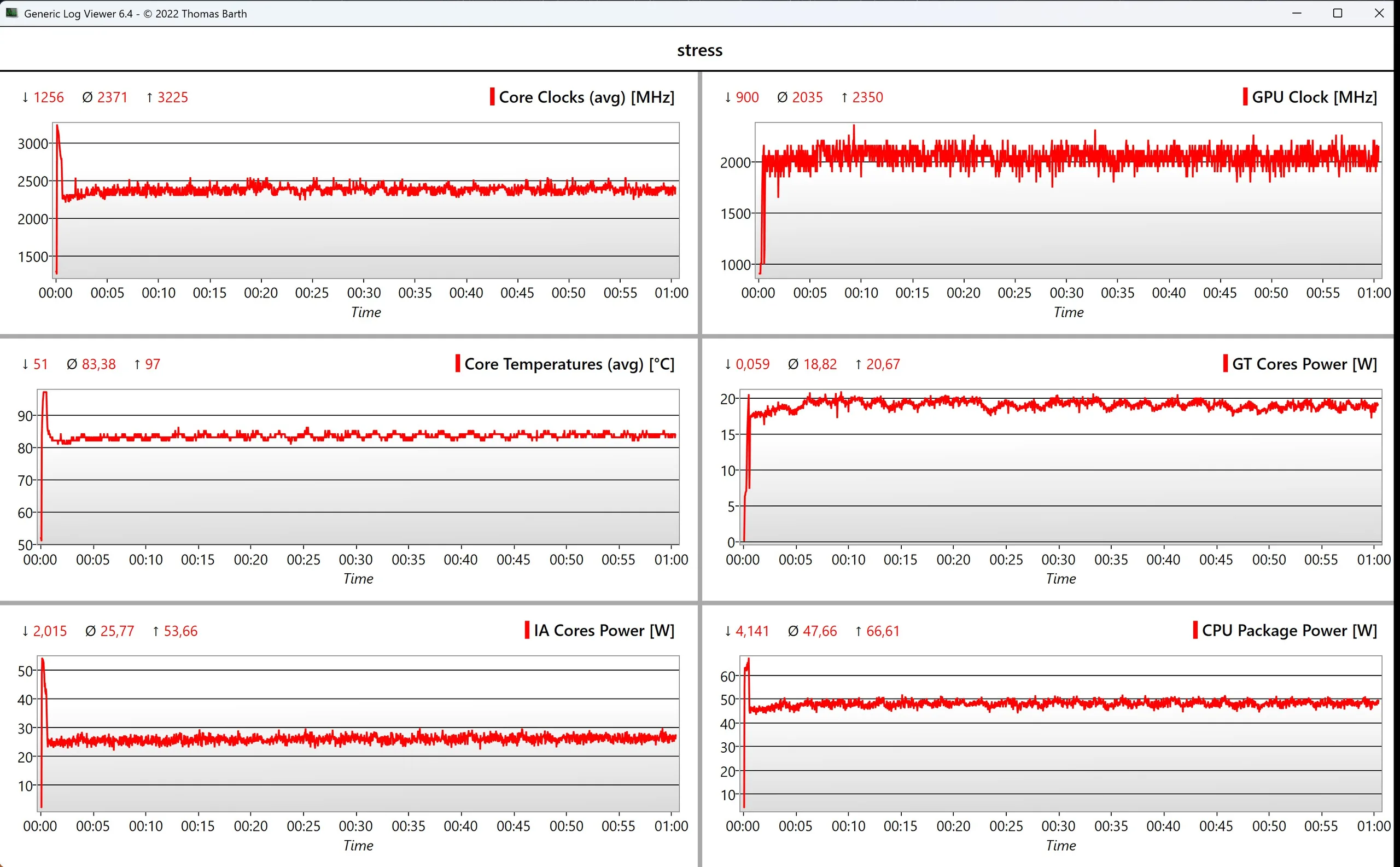 Onder belasting zien we een maximum van 96 watt, dat na ongeveer 45 seconden snel afvlakt naar 80 watt. Buiten de EU wordt de Zenbook Duo geleverd met een 100 watt voeding, wat krachtig genoeg lijkt.