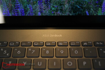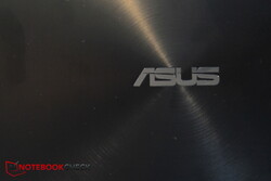 Het ontwerp bevalt door zijn edele eenvoud. Met zijn gezandstraalde ronde structuren ziet het donkere aluminium oppervlak er bijna uit als een klassevolle plaat. Ook de delicate, zandkleurige "ZenBook Series" belettering in het midden van het scharnier is mooi. Een asymmetrisch geplaatst zilverkleurig ASUS-logo siert de bovenkant. Vingerafdrukken en vetvlekken blijven echter duidelijk zichtbaar op het oppervlak.