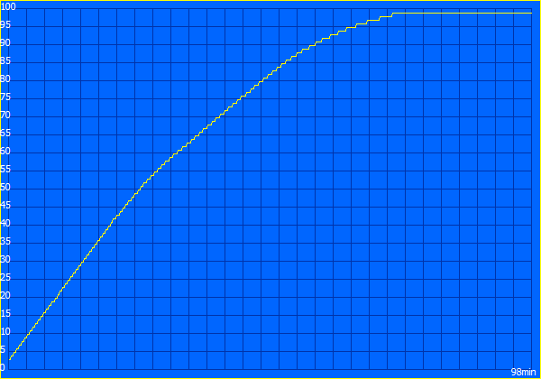 Asus gebruikt een 70 Wh batterij en de acculooptijden zijn oké, maar we zijn eigenlijk niet zo onder de indruk. Een Wi-Fi runtime van 13 uur bij 150 nits is niets bijzonders. Dit is vergelijkbaar met de Zenbook S16 met een grotere 83 Wh batterij, dus de A16 is wel efficiënter, maar de gebruiker krijgt nog steeds geen langere runtime. Wij hadden liever een grotere batterij gehad, want de andere rivalen halen looptijden van rond de 16 uur. De Dell XPS 16 is een beetje een buitenbeentje met zijn Full-HD IPS scherm, maar de A16 zal ook beschikbaar zijn met een Full-HD-OLED als u het maximale uithoudingsvermogen van de batterij wilt.