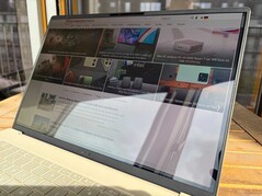 Asus gebruikt een toetsenbord met een veerweg van 1,3 mm, maar in vergelijking met de kleinere Zenbook A14 is de basiseenheid nog stijver en is de algehele type-ervaring iets comfortabeler. De witte achtergrondverlichting werkt goed in combinatie met de donkere toetskapjes en kan automatisch worden geregeld via een sensor. Het grote clickpad (15 x 10 cm) biedt uitstekende glijmogelijkheden, maar de mechanische klikken in de onderste helft zijn een beetje luid. Wij raden u aan om tikken om te klikken te gebruiken.