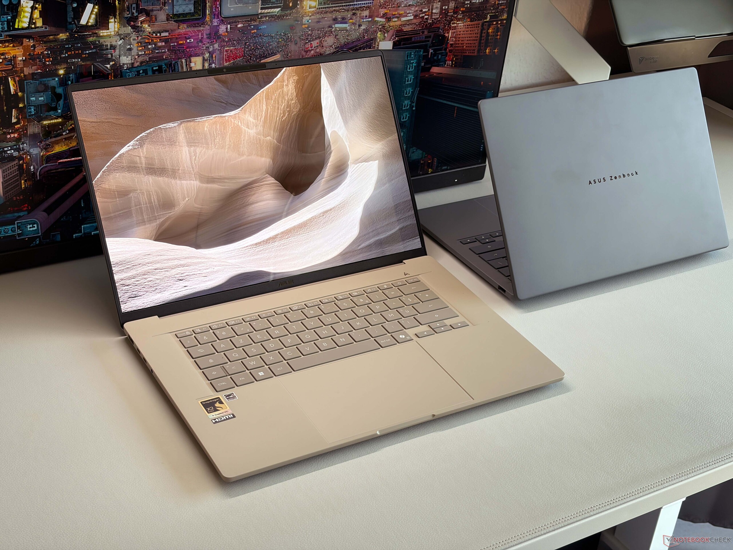 Na de Snapdragon-aangedreven Zenbook A14 uit 2024 lanceert Asus nu ook een groter 16-inch model als directe concurrent voor de Zenbook S16 en apparaten zoals de Dell XPS 16 of Samsung's Galaxy Book6 Pro 16 en natuurlijk Apple's 15-inch MacBook Air. De nieuwe Zenbook A16 maakt ook gebruik van een zeer lichtgewicht chassis en weegt slechts 1,21 kg. Voor $1599 krijgt u de gloednieuwe Qualcomm Snapdragon X2 Elite Extreme-processor in combinatie met 48 GB RAM, 1 TB SSD-opslag en een 16-inch OLED-paneel met 120 Hz en 2,8K resolutie. Zie ook onze analyse van de nieuwe Snapdragon X2 Elite chips voor meer details: