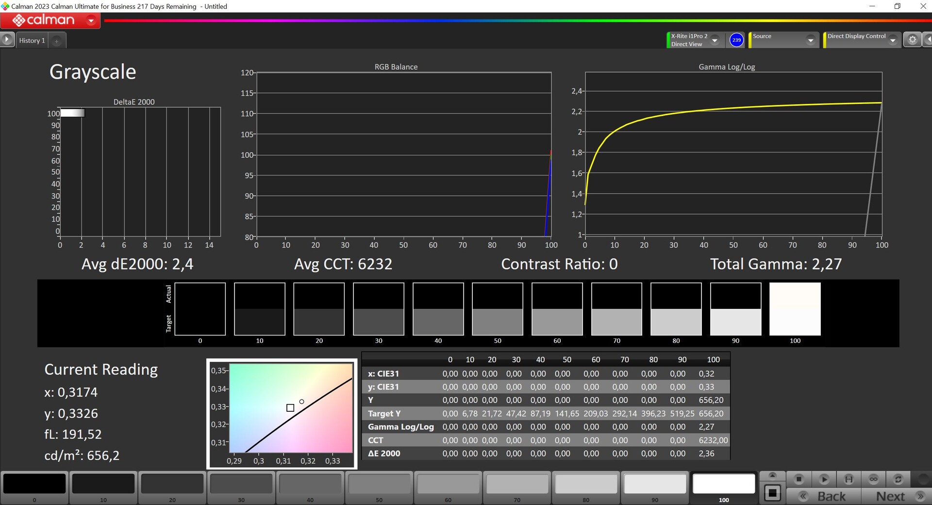 ΔE Greyscale Calman: 2.6 | ∀{0.09-98 Ø5}