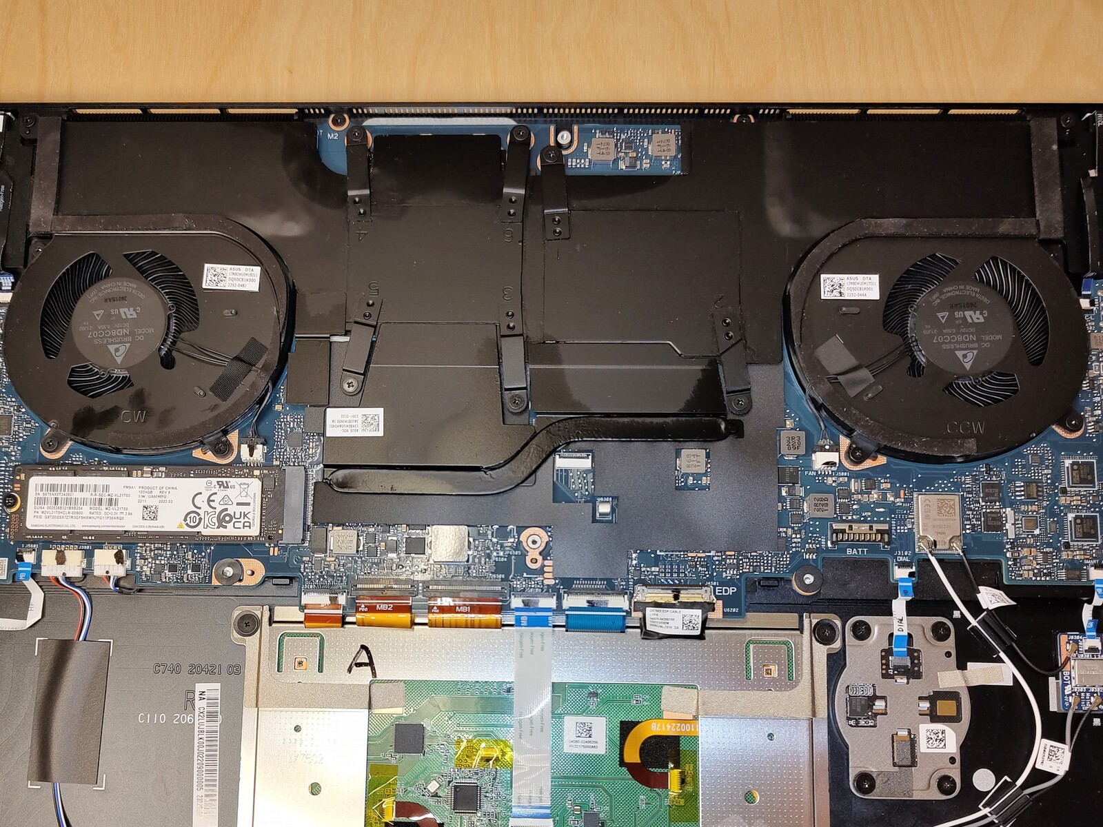 Het plaatsen van de WLAN-antennes kan lastig zijn bij laptops met een metalen behuizing. Asus lijkt geen goede keuze te hebben gemaakt bij de plaatsing van de drie antennes in de ZenBook Pro 16X OLED. Bijgevolg vallen de upload- en downloadsnelheden ver onder de mogelijkheden van de geïnstalleerde Intel AX211-module, hoewel Asus een versterker heeft geïnstalleerd met automatische schakeling tussen twee van de antennes.