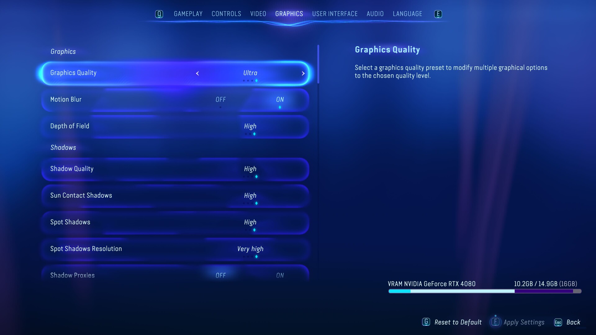 Daarbij komt nog een handige VRAM-weergave. Volgens deze functie heeft Frontiers of Pandora behoorlijk wat RAM-geheugen nodig: Een combinatie van 4K en Ultra gebruikt ongeveer 10 GB. Hoewel het een paar seconden duurt voordat het grafische menu geladen is na het wijzigen van een voorinstelling, hoeft u het spel niet opnieuw op te starten - hetzelfde kan niet van al te veel andere spellen gezegd worden.