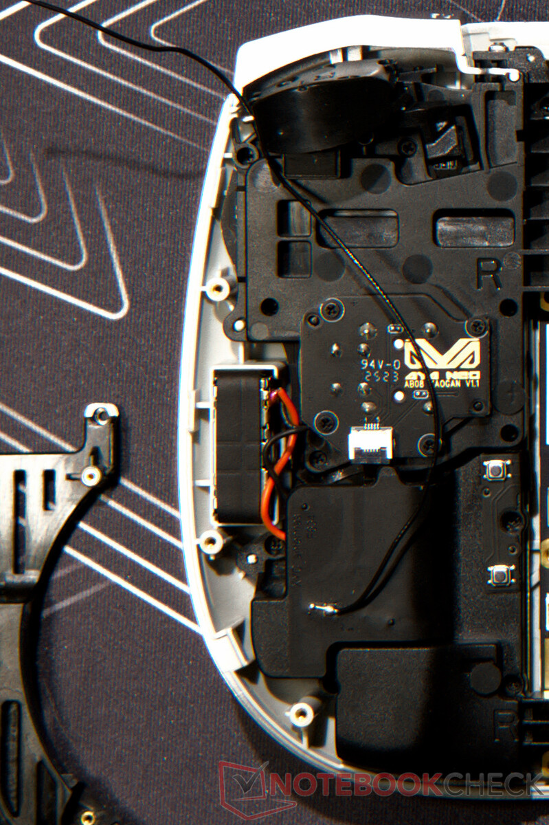 Het demonteren van de Ayaneo Kun is niet echt eenvoudig. Eerst moet u de twee gripdeksels aan de achterkant verwijderen. De strip tussen de schouderknoppen moet ook verwijderd worden - dit legt de schroeven bloot die verwijderd moeten worden. Om toegang te krijgen tot alle aansluitingen binnenin, moet u nog meer schroeven verwijderen en enkele lintkabels loskoppelen. Let vooral op de lintkabel voor de vingerafdruksensor. Hoewel deze lang genoeg is om de onderkant veilig te verwijderen, kan deze gemakkelijk beschadigd raken door buigen. Om toegang te krijgen tot de M.2-2280 NVMe SSD, moet eerst de aansluitprint voor de microSD-kaartlezer en de SIM-kaart verwijderd worden. Net als bij de Air 1Szit er een garantiesticker op een van de schroeven, maar deze kan gemakkelijk helemaal verwijderd worden. De WLAN-module kan ook worden vervangen, maar deze is nog dieper geïnstalleerd. De ventilator en het plastic frame moeten ook verwijderd worden om bij de insteekkaart te komen. De aansluiting voor de LTE-modem wordt in ons geval niet gebruikt, maar zou achteraf aangebracht kunnen worden. We zagen echter geen bijbehorende antennes voorgemonteerd in ons testapparaat. Voor oudere handhelds biedt Ayaneo veel reserveonderdelen in de eigen winkel. Onderdelen voor de Ayaneo Kun zullen binnenkort zeker volgen.