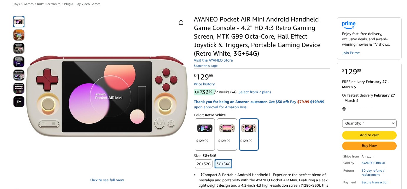 Ayaneo lijkt nu alle voorbestellingen te hebben voldaan, want de handheld is nu te koop bij Amazon. Hoewel het een beetje meer kost dan wanneer u het apparaat rechtstreeks van de website van de fabrikant koopt, kunt u het beter bij Amazon kopen.