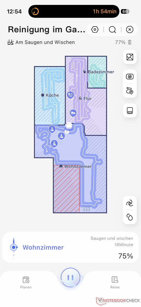 We hadden hier meer van verwacht, vooral omdat de fabrikant ijverig reclame maakt voor kunstmatige intelligentie. Volgens onze testindrukken blijft de Narwhal Flow op dit punt achter bij andere topmodellen. We hebben de nieuwste firmware geïnstalleerd voor onze test. We kunnen niet met zekerheid zeggen of het testexemplaar dat we voor de lancering hebben verstrekt een pre-productiemodel is dat mogelijk nog niet volledig ontwikkeld is en of dit punt van kritiek bij de officiële lancering verbeterd zal zijn.