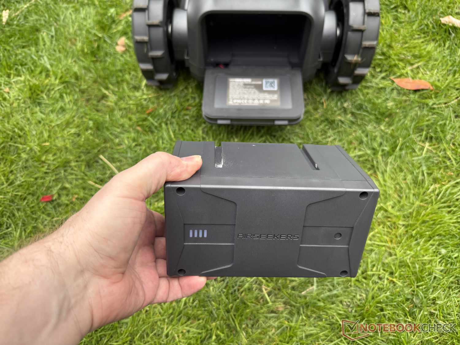 De fabrikant belooft een looptijd van drie uur met de enorme 15 Ah accu. In de praktijk overtrof de Airseekers Tron deze tijd en maaide ongeveer 350 vierkante meter met RTK-navigatie en standaardinstellingen. Theoretisch zou er nog meer oppervlakte mogelijk zijn geweest als hij niet vaak van positie was veranderd zonder te maaien en met weinig systeem.