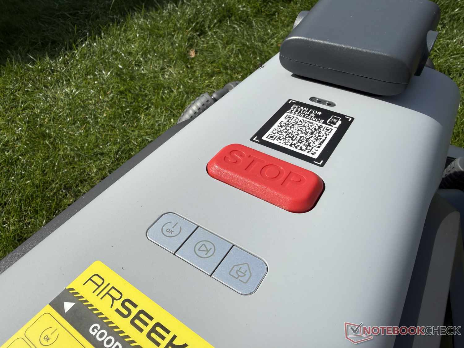 Als alternatief voor de app is het ook mogelijk om de Airseekers Tron rechtstreeks te bedienen. Er zitten drie knoppen op de bovenkant naast de stopknop voor de basisfuncties. Er is echter geen display. Een LED-strip bovenaan en twee LED-strips vooraan, die de gelijkenissen met de Batmobile nog meer benadrukken, geven informatie over de huidige status, afhankelijk van de kleur. De helderheid kan worden aangepast in de app, net als het volume van de stem van de robot.