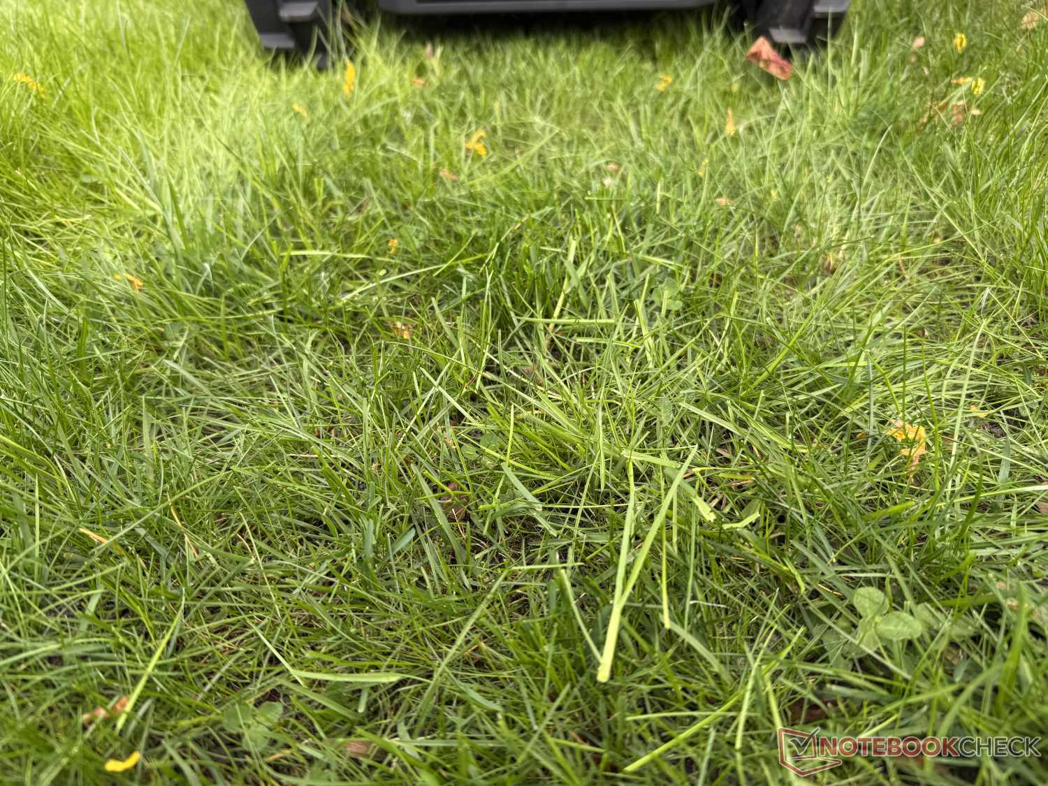De door de fabrikant beloofde mulching werkte in de praktijk echter slechts in beperkte mate. Er bleven veel langere stengels op het gazon liggen. Als u dit niet wilt, moet u eerst een hoog gazon voormaaien (zoals bij andere modellen) of de aanzienlijke maaihoogte vanaf 9 cm geleidelijk verlagen.