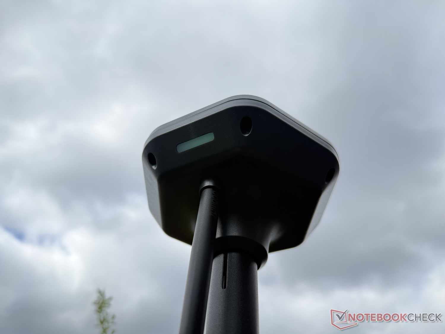 Het laadstation wordt vervolgens met grondschroeven aan de grond bevestigd en (indien gewenst) wordt de RTK-antenne opgesteld en samen met de stroomkabel aan de achterkant achter een klepje op het laadstation aangesloten. Helaas is de RTK-kabel erg kort. Het station moet daarom dicht bij het laadstation worden geplaatst. Als alternatief werd bij ons testapparaat een extra voedingseenheid meegeleverd, waarmee het station ook ver weg kan worden opgesteld, maar dan heeft het ook een eigen stopcontact nodig.