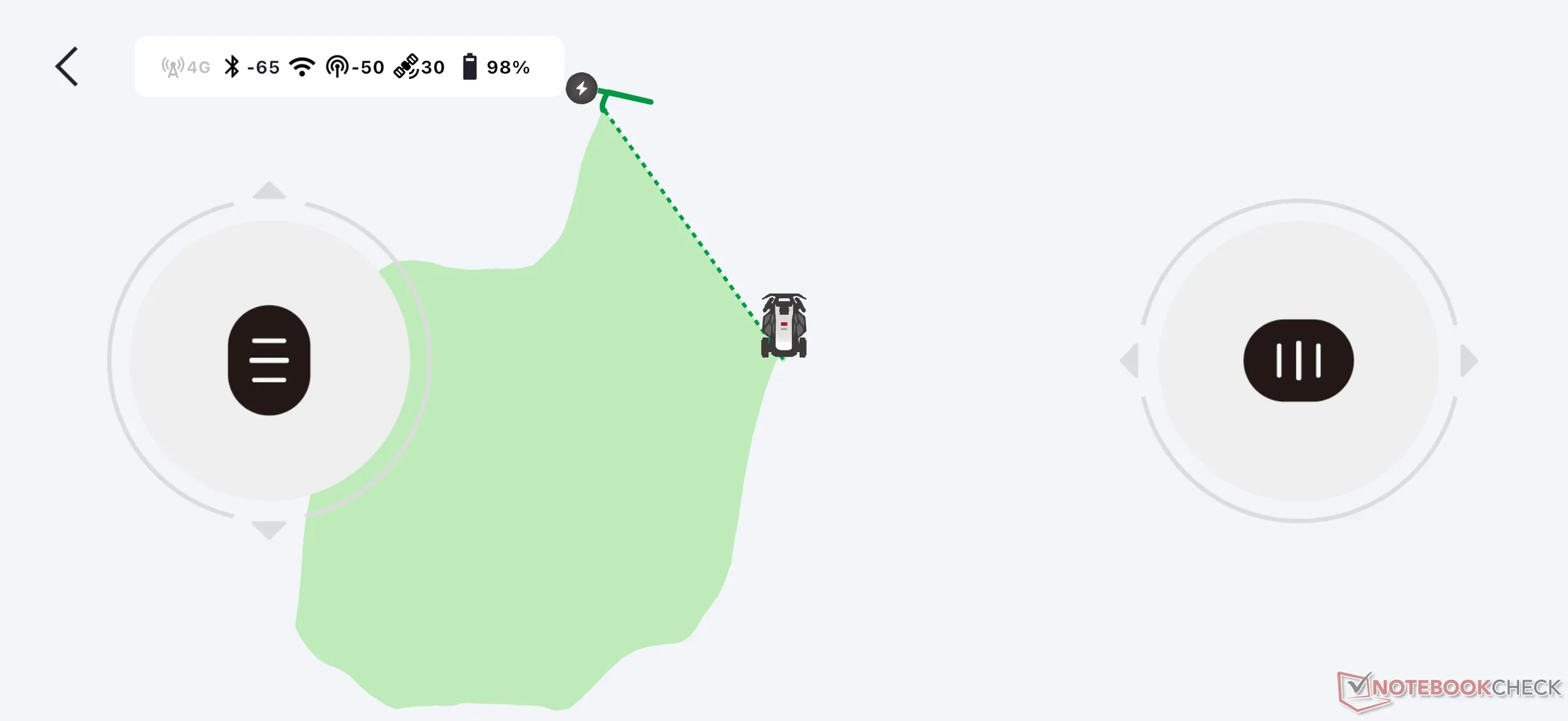 Rechte paden, die veel andere robotmaaiers betrouwbaar door onze testtuinen hebben gemaaid, zijn niet het resultaat. Bovendien verliet de robotmaaier af en toe het in kaart gebrachte gebied met een paar centimeter in RTK-modus. Als dit gebeurt op een schuine rand, loopt het maaiproces vast en wordt het onderbroken. Helaas stuurde de app geen foutmelding via pushmeldingen. Daarnaast liet de robotmaaier een wat ruwe indruk achter bij het draaien van zijn wielen in de test, wat kan leiden tot lelijke sporen, vooral op zachte grond.