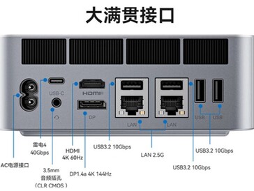 De mini-pc is verkrijgbaar in twee modelversies, namelijk met een Intel Core Ultra 7 155H en een Intel Core Ultra 9 185H. Het RAM-geheugen is 32 gigabyte en de SSD heeft een capaciteit van één terabyte. Er zijn moderne aansluitingen beschikbaar, waaronder twee ethernetpoorten met een maximale gegevensoverdrachtsnelheid van 2,5 GBit/s, USB Type-C met een snelheid van 40 GBit/s, HDMI, DisplayPort 1.4a, en verschillende USB 3.2 Type-A poorten met een snelheid van 10 GBit/s. Aan de voorkant bevindt zich een geheugenkaartlezer. Het zou ook mogelijk moeten zijn om het apparaat te ontgrendelen met de vingerafdruk van de eigenaar.