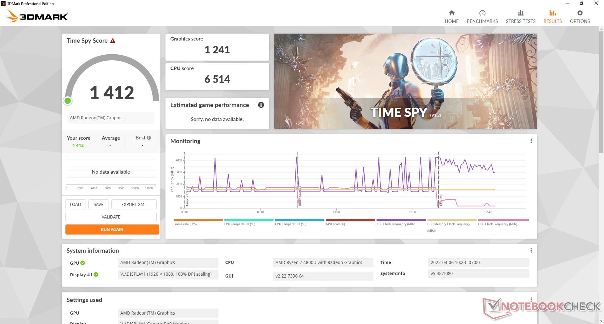 De geïntegreerde Radeon Vega 8 GPU is nog steeds erg goed, ondanks dat hij een generatie of twee oud is. 3DMark resultaten zijn ongeveer 20 tot 30 procent langzamer dan de concurrerende Iris Xe 96 EU's op dual-channel RAM of ongeveer 5 tot 20 procent sneller als de Intel GPU op single-channel RAM zou draaien. Verwachtingen van meer dan 30 FPS in lage 1080p of 720p instellingen is niet onredelijk, afhankelijk van de titel.