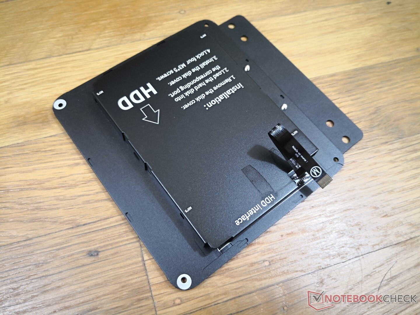 De doos bevat een verwijderbare VESA-beugel voor wandmontage, een AC-adapter, twee korte HDMI-kabels en een handleiding. De standaard beperkte fabrieksgarantie van één jaar is van toepassing, vergeleken met drie jaar op de meeste Intel NUC-systemen.