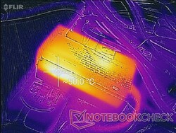 We halen een maximum van 49 W uit de kleine ())(() 57 W wall wart AC adapter wanneer we Prime95 en FurMark gelijktijdig gebruiken. Dit kan zelfs nog hoger worden als extra USB apparaten worden aangesloten, zoals monitoren of smartphones.