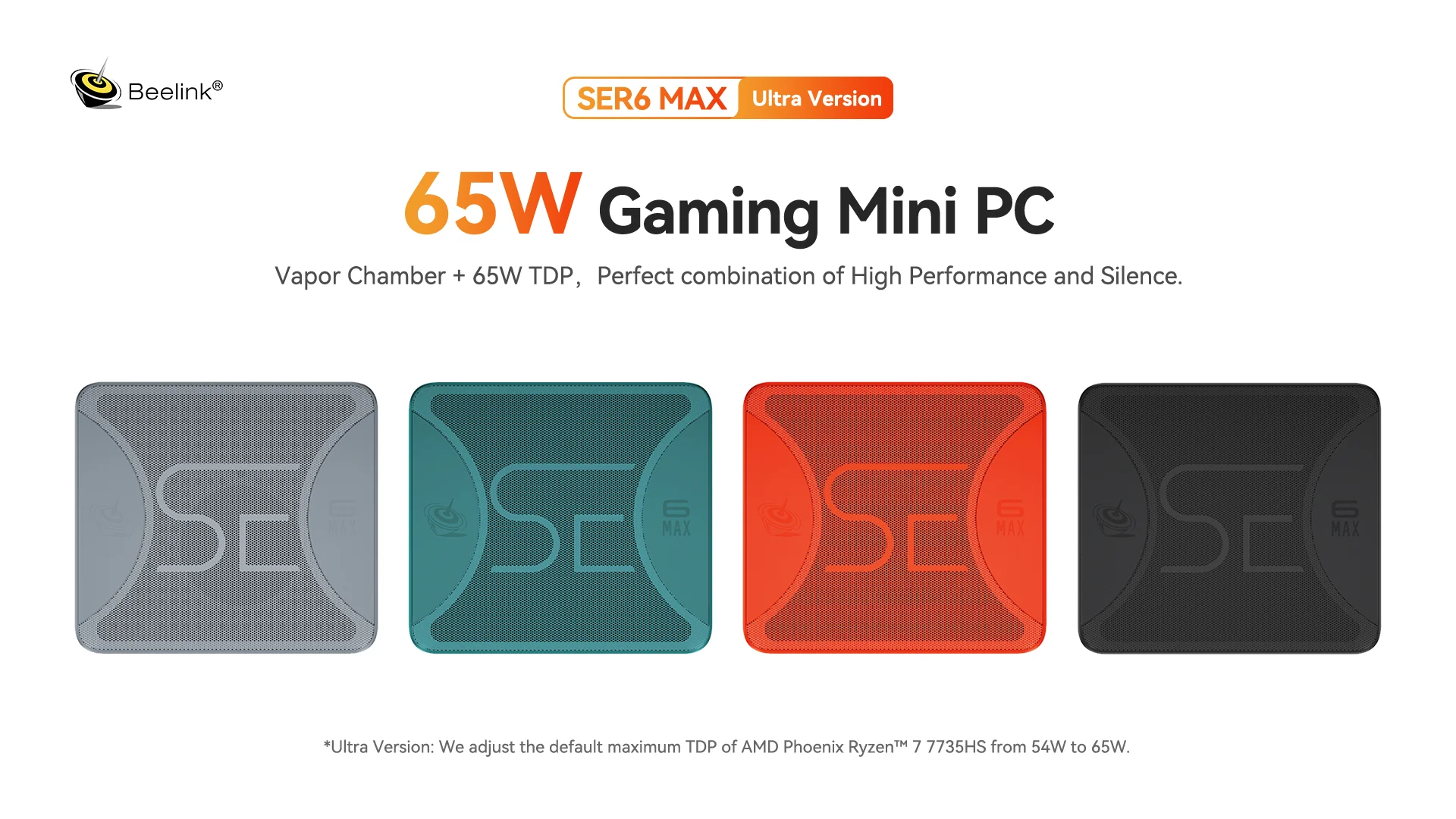 DeRyzen 7 7735HSheeft een TDP van 35 W, hoewel AMD fabrikanten toestaat dit te verhogen tot 54 W. Beelink beweert echter nog eens 11 W uit deRyzen 7 7735HSwaardoor de TDP op 65 W komt. Met andere woorden, deRyzen 7 7735HSop hetzelfde TDP als instap desktop processors zoals de Ryzen 5 5600X. Naar verluidt heeft de SER6 Max een krachtige koeloplossing, met een dampkamer toegevoegd om de kans op thermische throttling te minimaliseren.