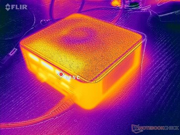 De oppervlaktetemperatuur is geen probleem op de SER6 Pro. Houd er wel rekening mee dat de frisse lucht via de bovenkant binnenkomt, dus leg er geen papieren, boeken of voorwerpen op. Laat aan de achterkant ook wat ruimte vrij voor de afvoer van afvalwarmte.